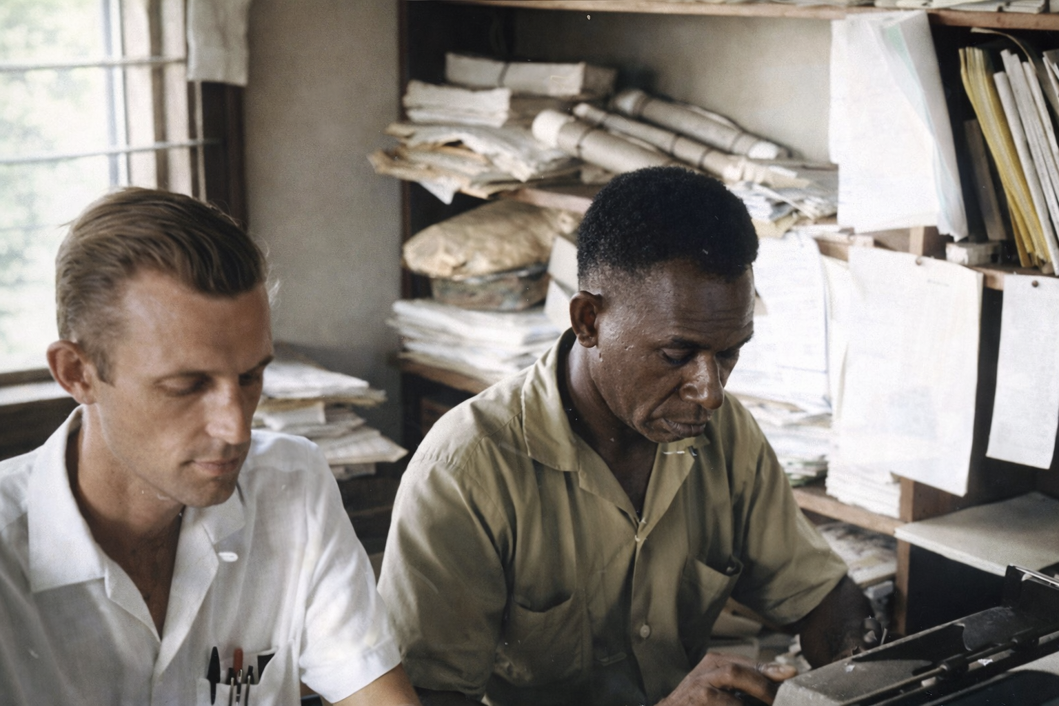 Malalo Office. Alvin Erickson and Gideon Apeng who was from Buakap. He was a main teacher at Malalo. He was also the secretary of the Malalo Circuit. Located at the Malalo station. He took care of all the minutes, sent out all the notices, sent in necessary school reports and took care of the local branch bank opened at Malalo several years from this letter.