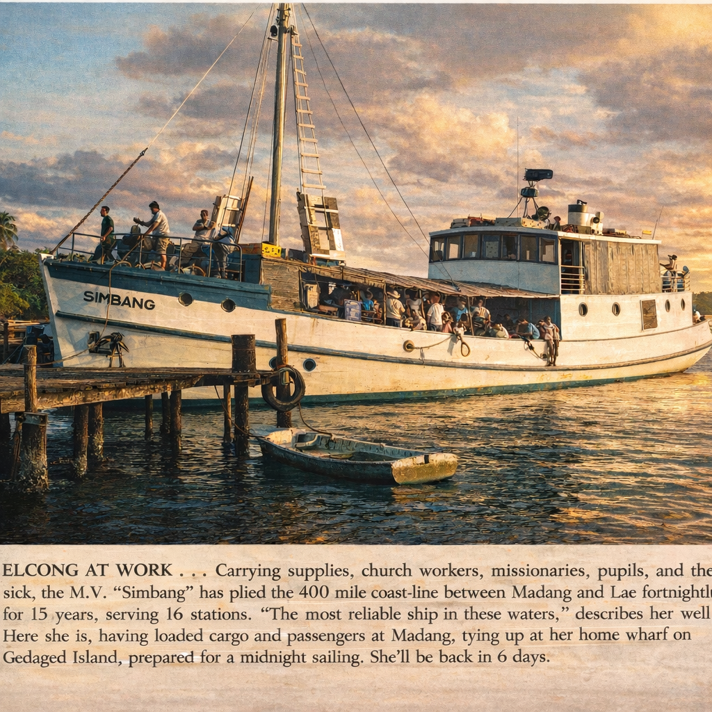 Getting to the Simbang already tests expectations. The family hurries to Lae, only to learn the ship will not depart until the following night. The reclaimed day fills easily with errands and unfinished work—because in New Guinea, time rarely obeys intention.
